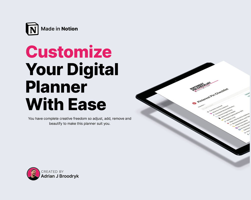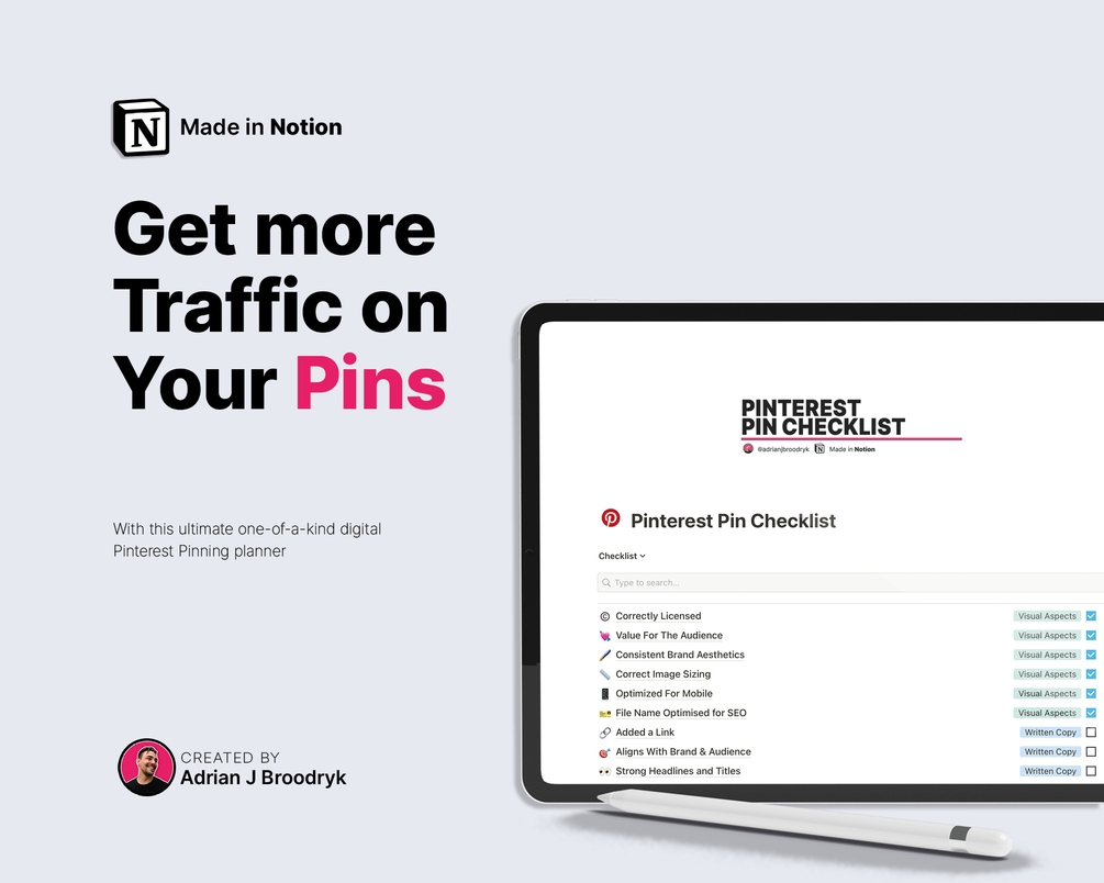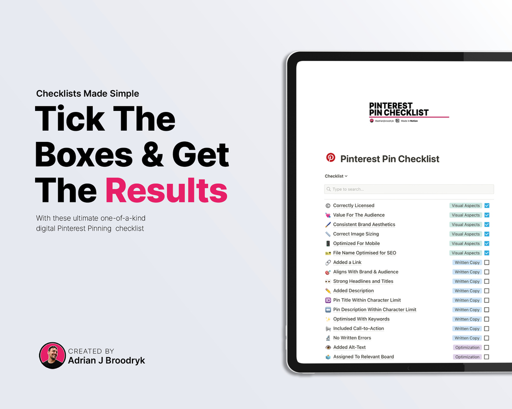With Our Digital Pinterest Pinning Checklist - Made in Notion by Adrian J Broodryk