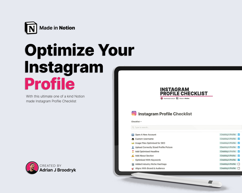 With Our Digital Instagram Profile - Made in Notion by Adrian J Broodryk