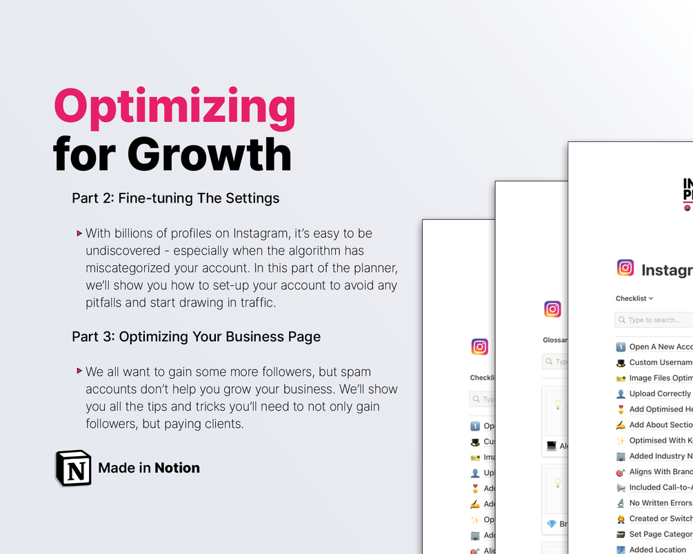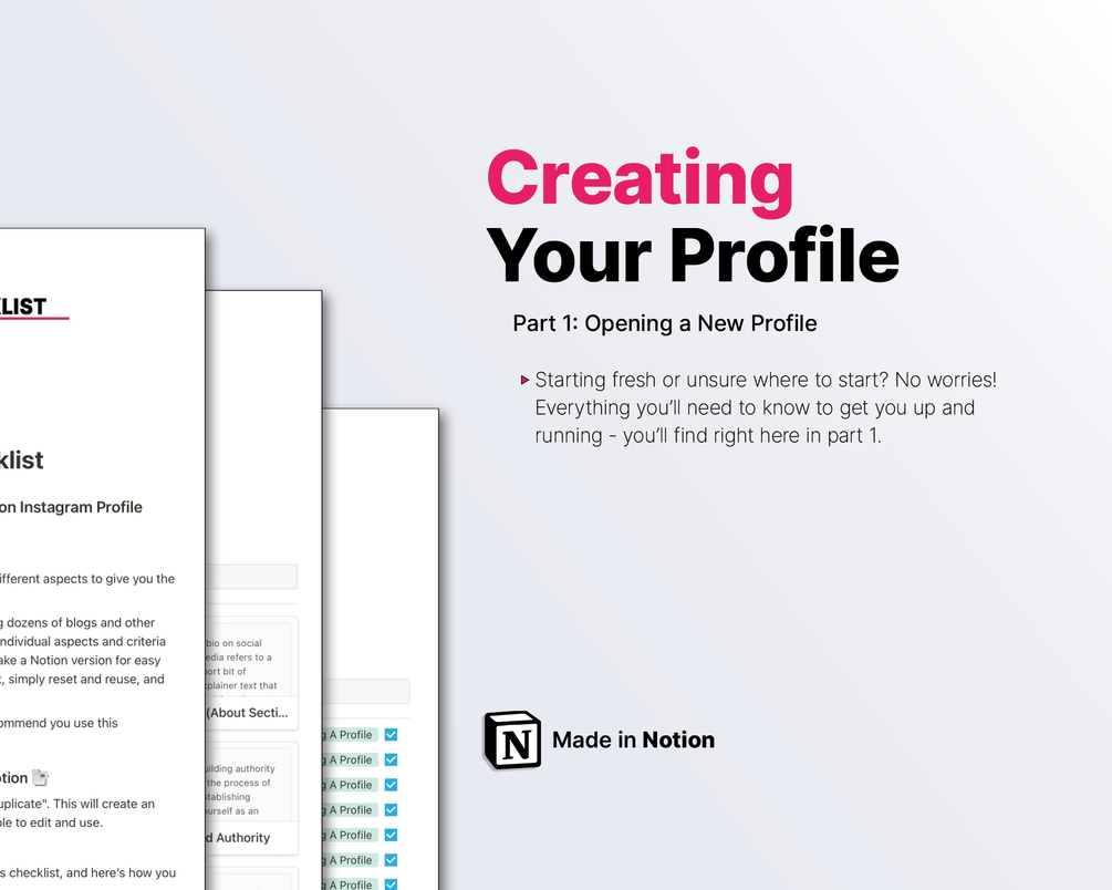 ๐ฆ๐๐ฒ๐ฝ #4 โ After you completed your purchase, open the downloadable PDF (you can also access it in your inbox). This welcoming page contains the link to your new Notion Instagram Profile Checklist.