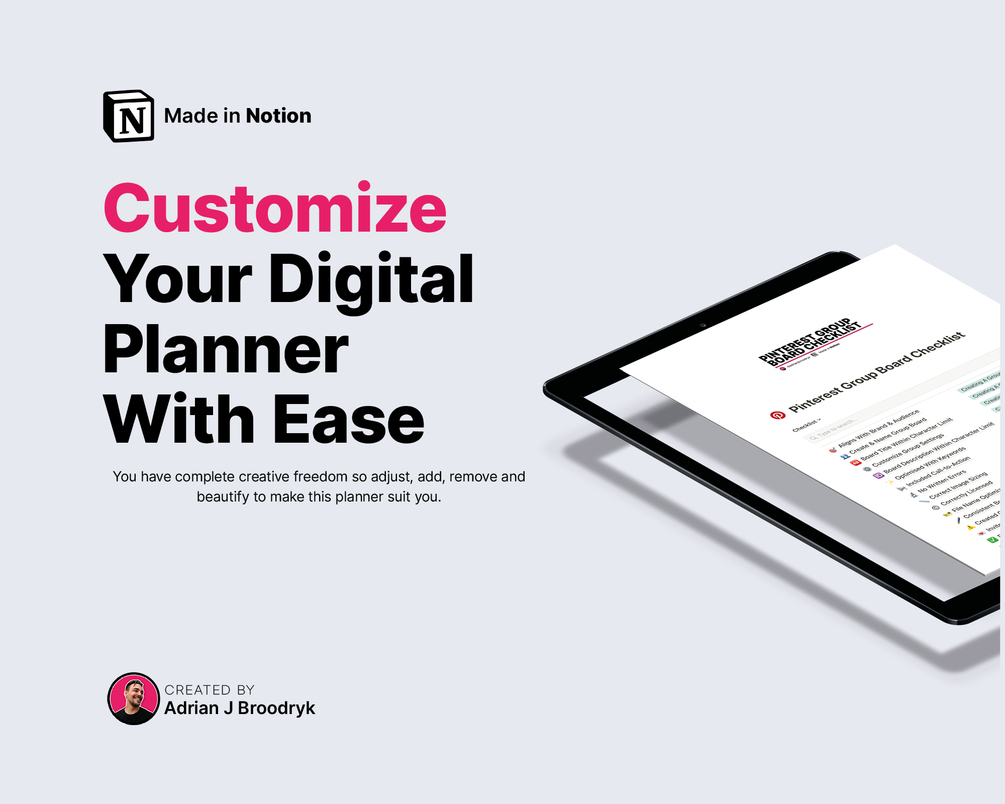 With Our Digital Pinterest Group Board Checklist - Made in Notion by Adrian J Broodryk